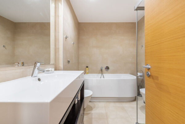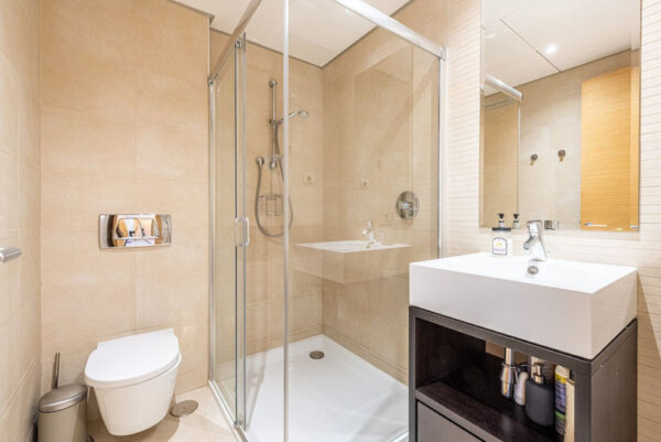 A nappaliból lélegzetelállító kilátás nyílik, ahogyan mindkét hálószobából is. A saját fürdőszobában kád és zuhany található, míg a másik fürdőszobában zuhany. A konyha teljesen felszerelt minden szükséges Bosch készülékkel, beleértve a nemrég vásárolt mosógépet és szárítógépet is. A hideg/meleg légkondicionáló rendszert tavaly júniusban teljesen újra cserélték.